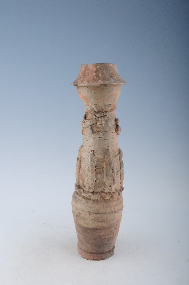 五代刻劃網紋堆塑塔式陶瓶