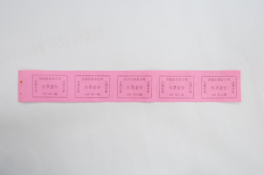 20世紀80年(nián)代會(huì)昌縣食品公司五連張壹∑≤±₽份肉票(piào)