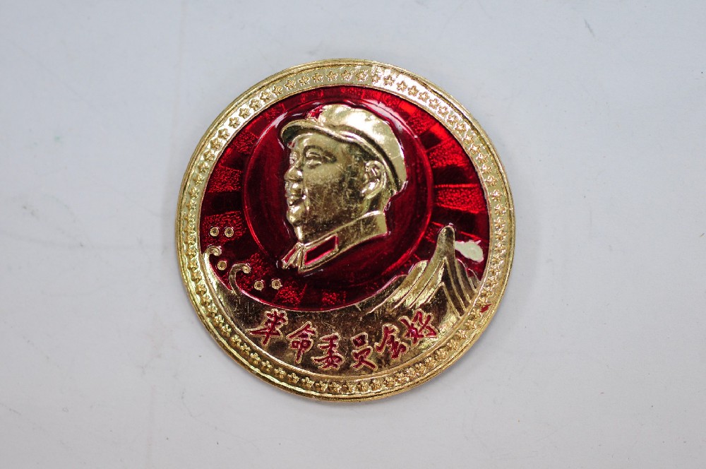 現(xiàn)代文(wén)化(huà)大(dà)革γ™命時(shí)期金(jīn)黃(huáng)色毛主席鋁像章(zhāng)