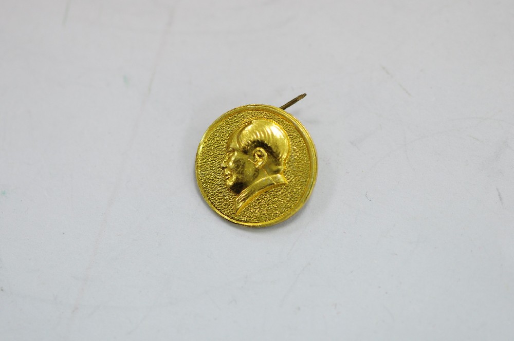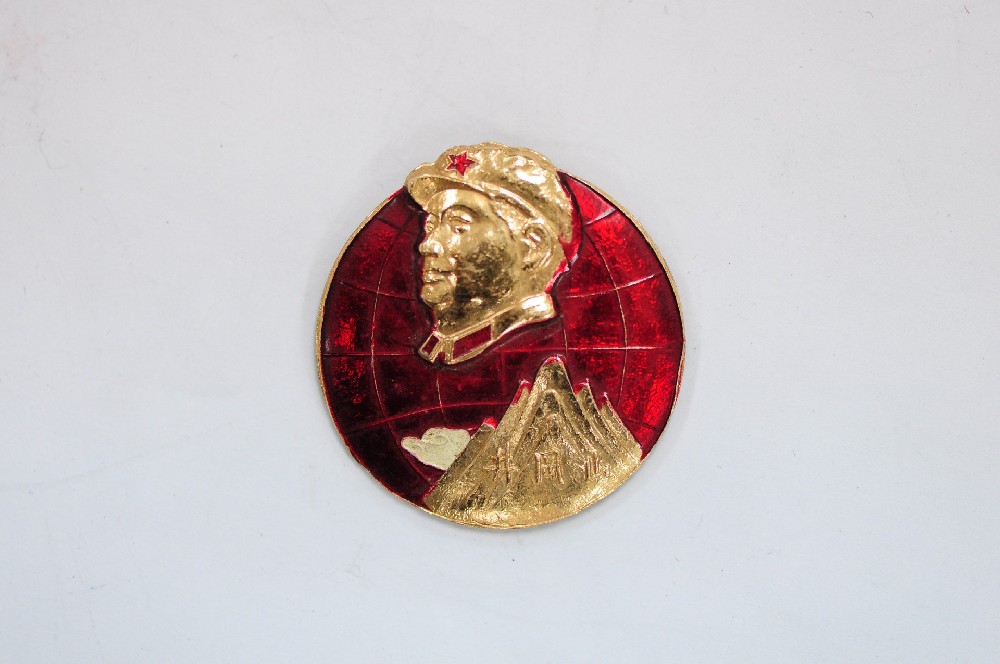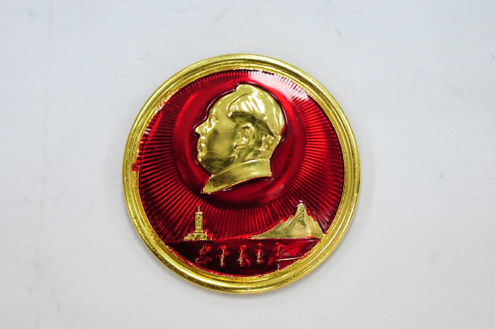 現(xiàn)代文(wén)化(huà)大(dà)革命時(s ♥hí)期金(jīn)黃(huáng)色毛主席鋁像'♣章(zhāng)