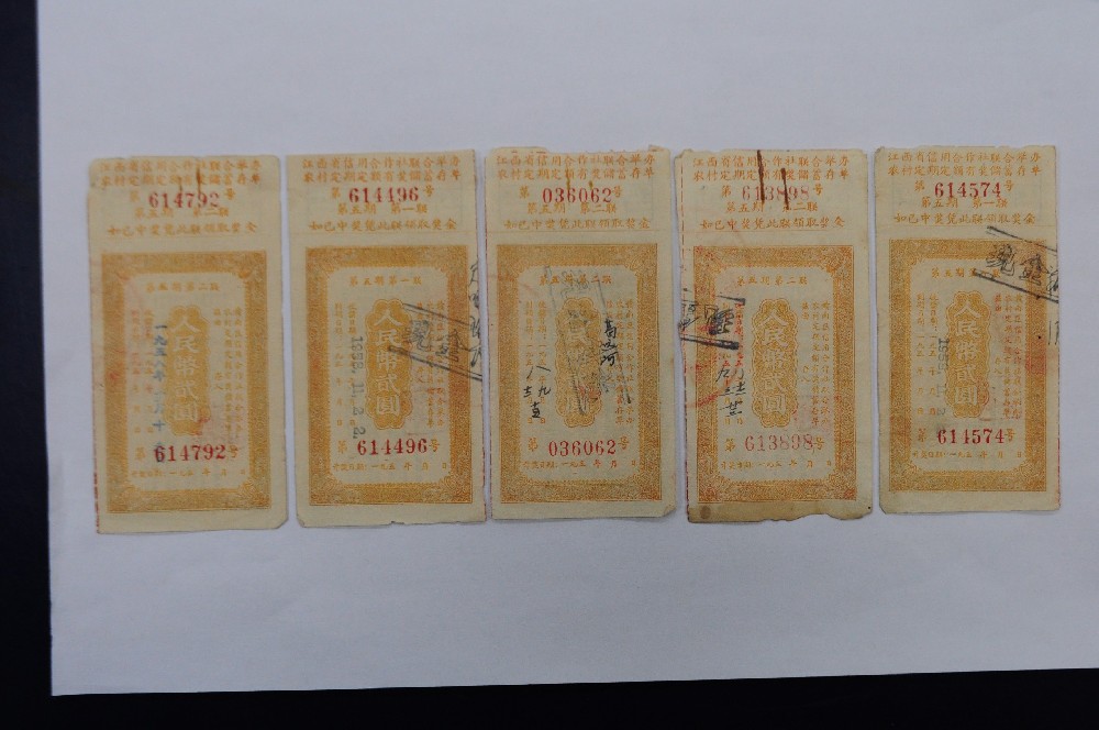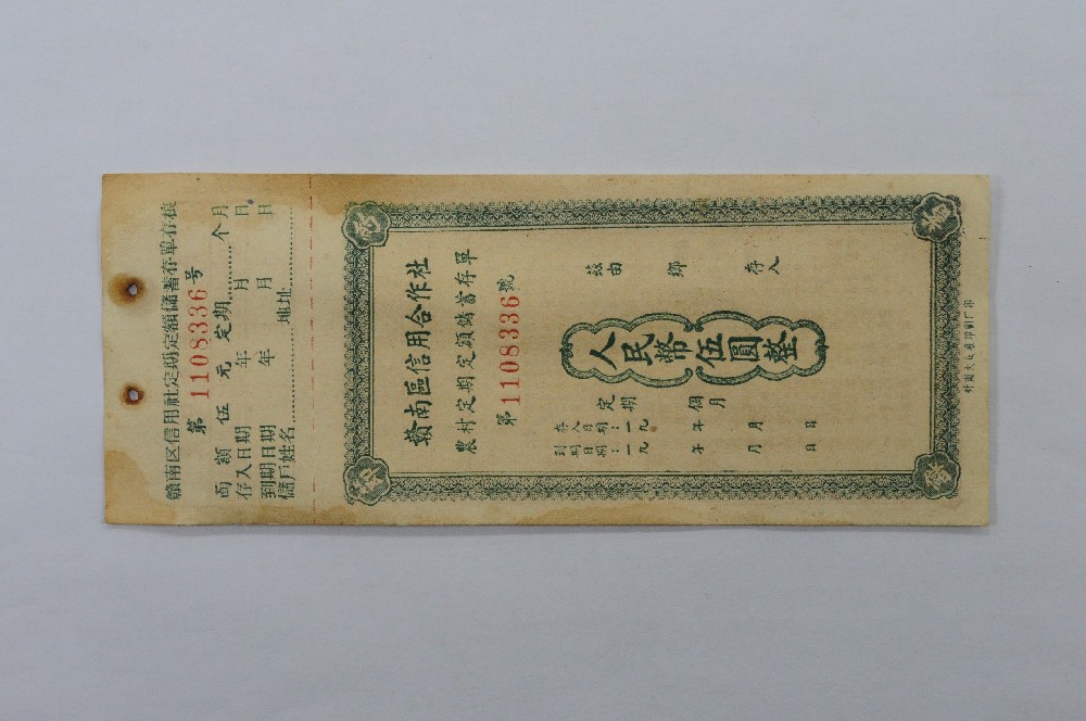 20世紀50年(nián)代贛南(nán)區(qū)信用(yòng)合作(zuò)社農(nóng)§'↔↔村(cūn)定期定額儲蓄伍圓存單