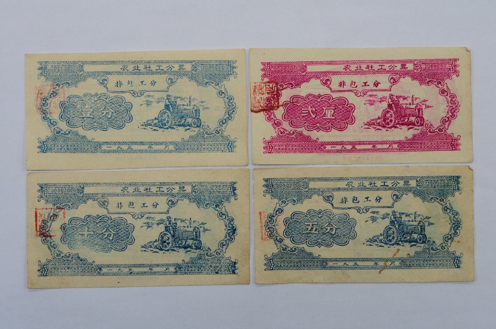 20世紀50年(nián)代農(nóng)業(yè)社非包工(gōng)二厘、一(yī)♣✘↓分(fēn)、五分(fēn)和(hé)十分(fēn)工(gōng)$Ω×分(fēn)票(piào)