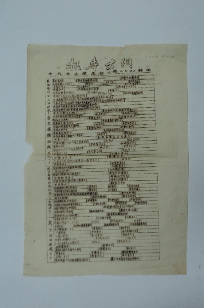第二次國(guó)內(nèi)革命戰争時(shí)期中共安遠(yuǎn)縣委組織部印制(zhì→™ )的(de)報(bào)告大(dà)綱