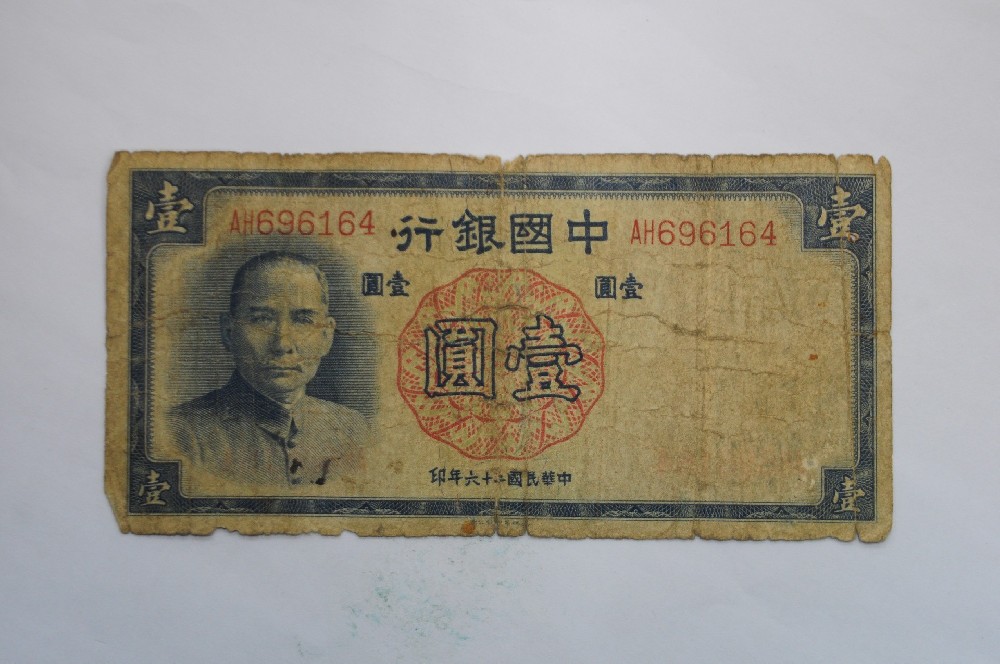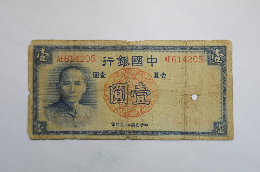 1937年(nián)中國(guó)銀(yín)行(xí♥¥α'ng)壹圓紙(zhǐ)币