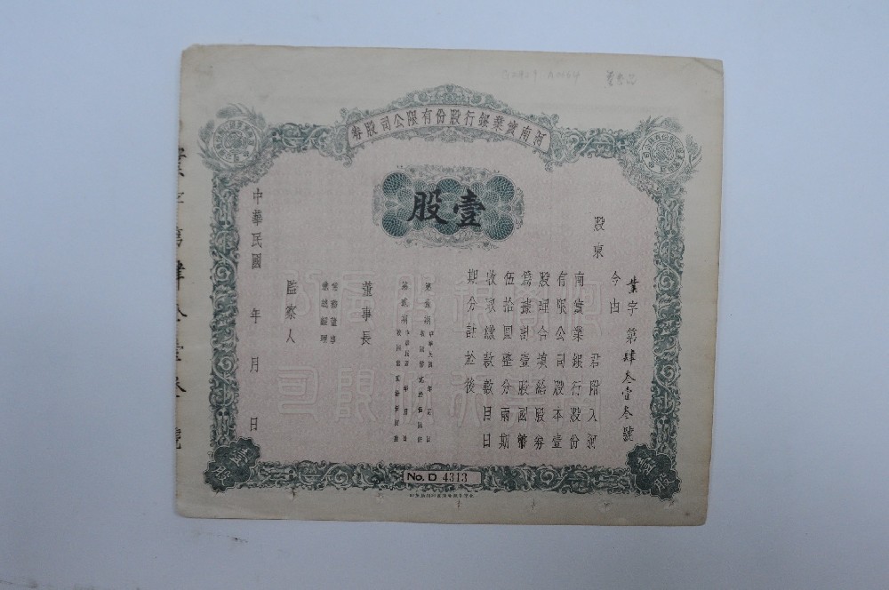 民(mín)國(guó)河(hé)南(nán)實業(yè)銀(yí★♦n)行(xíng)股份有(yǒu)限公司壹股股券
