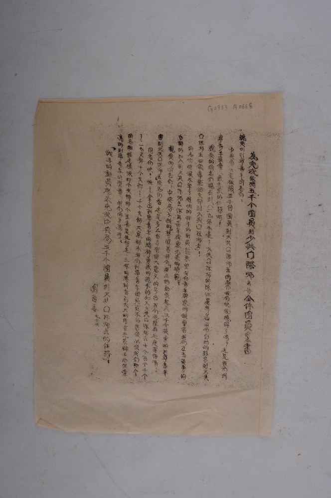 1933年(nián)7月(yuè)16日(rì)江西(xī)省團省委 β下(xià)發的(de)《為(wèi)完成征調五千個(gè)團員(yuán)到(dào)少(shǎ♥δo)共國(guó)際師(shī)去(qù)告全體<±∏(tǐ)團員(yuán)同志(zhì)書(shū)》