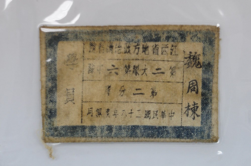 民(mín)國(guó)二十八年(nián)江西(xī)省地(dì)方政治講習(↔xí)院學員(yuán)魏周棟布胸章(zhāng)