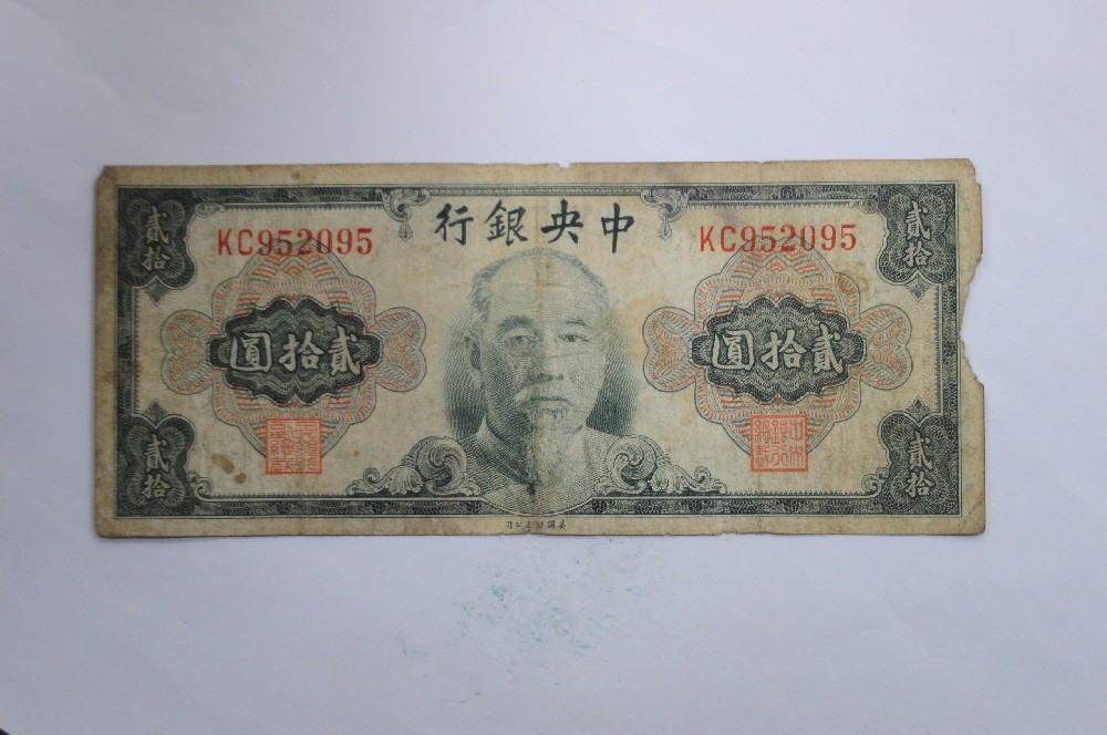 1945年(nián)中央銀(yín)行(xíng)貳拾圓紙(zhǐ)币