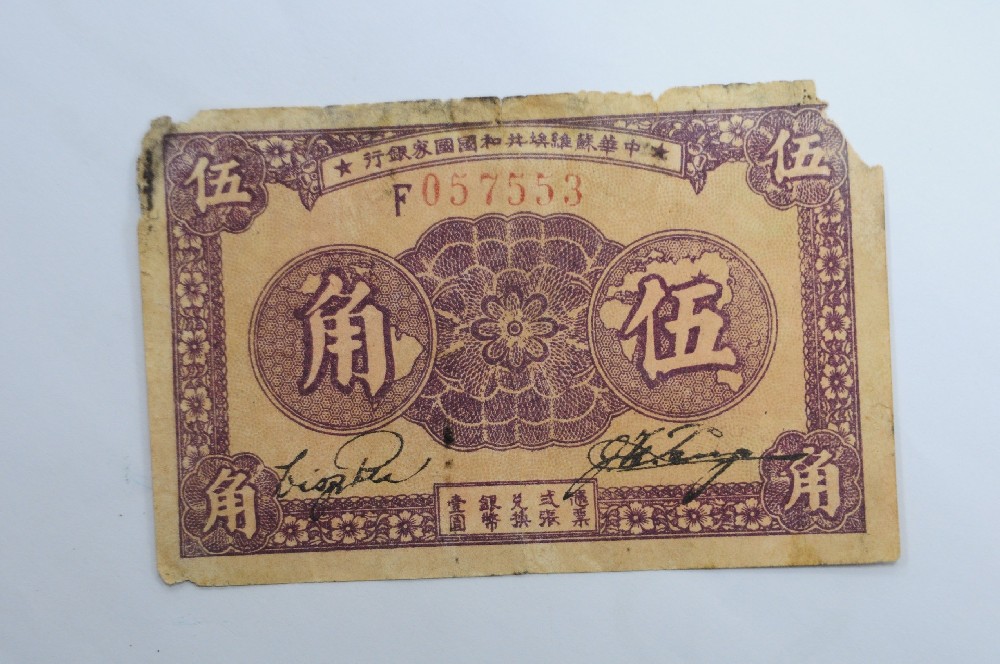 第二次國(guó)內(nèi)革命戰争時(ε'™shí)期中華蘇維埃共和(hé)國(guó)國(guó)家(jiā)銀(yín¶±)行(xíng)伍角紙(zhǐ)币