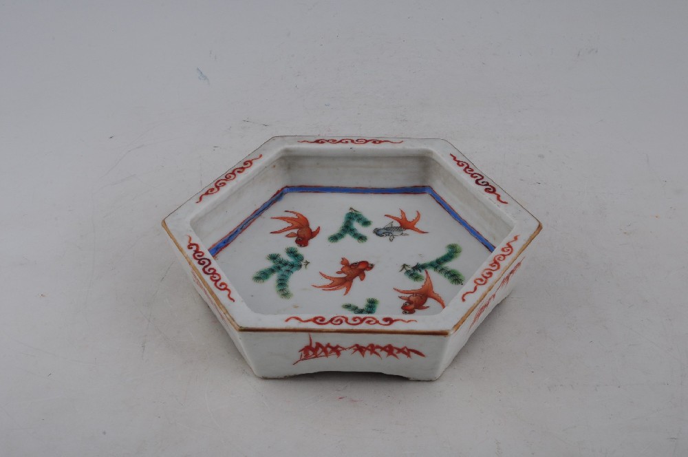 清粉彩金(jīn)魚紋六方水(shuǐ)Ω↑盂